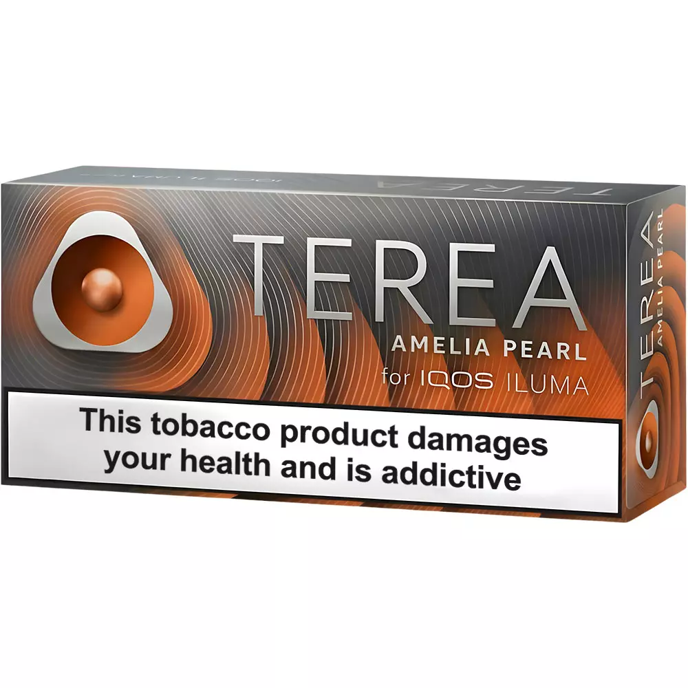 Terea Amelia Pearl (Sun Pearl) has a balanced toasted tobacco flavor with a hint of spicy herbs. Pressing a button reveals a refreshing menthol taste of exotic fruits.